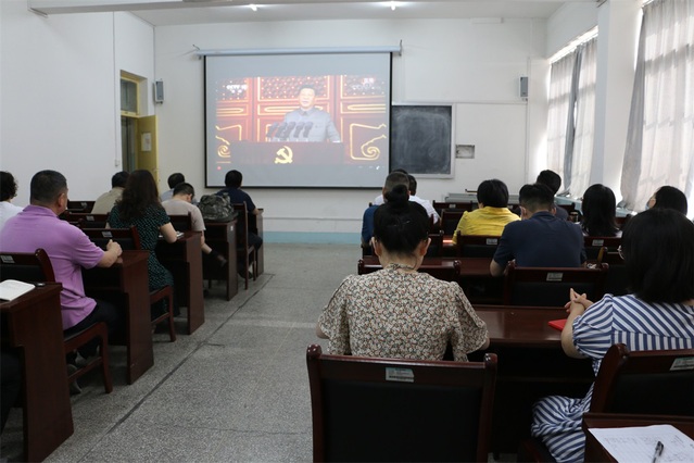7月1日上午8时,庆祝中国共产党成立100周年大会在北京天安门广场隆重举行。虞河校区党总支在猫都论坛 203教室组织全体党员干部群众集中收看实况直播,一起见证与感受建党百年这一历史性伟大时刻。