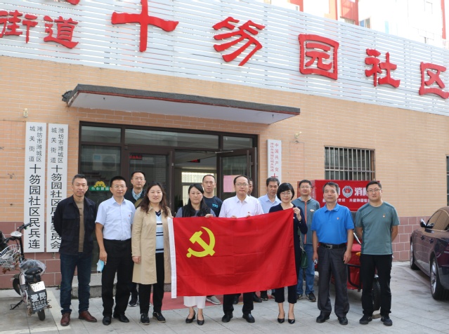 9月30日上午,虞河校区党总支组织党员到潍城区十笏园社区开展“双报到”暨联合主题党日活动。
