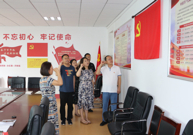 全体党员还面向鲜红的党旗重温入党誓词,再次作出庄严承诺:不忘初心、牢记使命,以实际行动为创建高水平医科大学努力奋斗,在本职岗位上贡献智慧力量,为党旗添光彩。