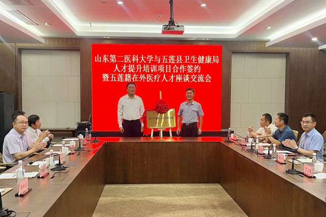 9月27日上午,学校与五莲县卫生健康局“基层卫生健康人才提升培训基地”揭牌仪式在五莲县举行。校党委委员、组织部部长王世群和五莲县卫生健康局党组书记、局长梅文日共同为“基层卫生健康人才提升培训基地”揭牌。